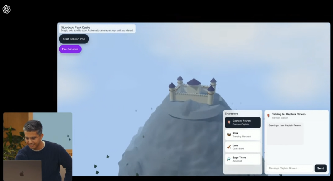 GPT-5能一次实现带有交互功能的3D小游戏。图片来源:OpenAI发布会。